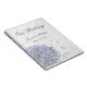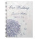 Este cuaderno de planificación de Bodas dulce personalizado tiene un azul cobalto oscuro, azul perwinkle suave y ramo floral lila suave hidrato púrpura en la parte inferior izquierda con algunos pétalos volando a la derecha. En el fondo, hay un patrón de damasco descolorido y un gráfico de rayas. En la parte superior, nuestro Boda está escrito. En el medio, se puede fácilmente personalizar los nombres de la novia y del novio junto con la fecha de la ceremonia del boda. Esto sería genial para un boda de primavera o verano.