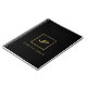 Cuaderno de fotos de plantilla negra de monograma dorado espiral moderno elegante. Perfecto para directores, gerentes, consultores, arquitectos, ingenieros, agentes inmobiliarios, contadores, corredores de bienes raíces, abogados, profesionales corporativos, estilistas, diseñadores, maestros, músicos, todas las profesiones.