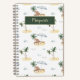 un patrón tropical de bonito con palmeras y un banco a la sombra de la isla de verano, te permite añadir tu nombre a un cuaderno muy bonito. Ideal para una revista de vacaciones o de aventura o para la escritura creativa.