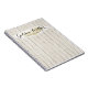 Cuaderno Pluma bohemia dorada sobre tablas de madera rústic