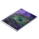 Sorprendente diseño de plumas de pavo real morado. Los ricos colores de la pluma de pavo real parecen asombrosos contra el morado real oscuro. Si necesitas una idea de regalo de pavo real, esto es hermoso.