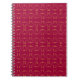 Elegante cuaderno con hermosos puntos dorados girando sobre fondo rojo burdeos. Estos puntos de polka de color dorado forman un patrón giratorio de cuatro brazos.