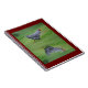 Este cuaderno muestra a Janet el pollo subiendo una colina en una granja en Connecticut.