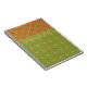 Un bloc de notas o un diario de moda espiral para personalizar, con los patrones de correspondencia de los discursos retro en un fondo verde, en equipo con puntos de polka. A partir de un collage de papel pintado a mano realizado por Judy Adamson, este colorido diseño forma parte de la colección "Poppy Fields" de Posh & Painterly.