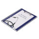 Diseño profesional de negocios con clase para fines médicos: un portapapeles de cuero azul con papel en blanco y un estetoscopio. Perfecto para cualquier negocio relacionado con la salud y la salud como un consultorio médico, médica, clínica u hospital. Para el personal hospitalario, médicos, enfermeras; elegante, noble y elegante.