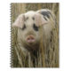 Este increíble cuaderno muestra una hermosa fotografía de un lindo cerdo moteado de rosa saliendo de una hierba alta.
