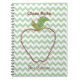 El cuaderno de un profesor divertido hecho en un patrón silencioso de zigzag de chevron verde y blanco. Los gráficos de un contorno de manzana se realizan en diamantes de imitación coloridos. Personaliza el texto rojo oscuro para ti o para tu profesor favorito.