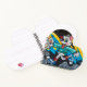 Un original cuaderno de estilo personalizado lleno de colores llamativos y una energía caótica para el personaje.