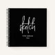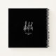 Cuaderno esquemático de sketchbook de artista personalizado. Guión casual y texto en blanco sobre fondo negro.