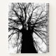 Fotografía de una silueta de un viejo árbol en blanco y negro.