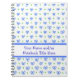 Un cuaderno de bonito, personalizable espiral, con un patrón de arcos y manchas en azul y verde sobre un fondo blanco, de un diseño pintado a mano por Judy Adamson.
