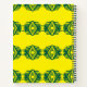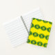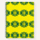 Un portátil elegante de tapa dura con una cubierta amarilla vibrante con un patrón geométrico verde audaz. Incluye el papel gráfico dentro y un enlace de espiral negra. Ideal para notas, bocetos o planificación.