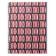 Un cuaderno en espiral con un patrón inspirado en Vikings de velas de barcos rojos y blancos sobre un fondo azul marino.