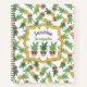 Un patrón de divertidas piñas de verano con gafas de sol estilo gato retro en una variedad de colores tropicales con el reflejo del sol desde sus lentes decora este divertido cuaderno junto con un trío de piñas gráficas y texto fácil de personalizar.