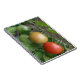 Este increíble cuaderno muestra una fotografía de un grupo de tomates maduros que incluyen un tomate rojo, naranja y verde en una línea, que crece en una planta de tomate en un jardín suburbano. La fotografía fue tomada usando macrofotografía para un resultado detallado.