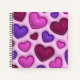 Portátil espiral con corazones rojos, rosados y púrpura brillante 3D
