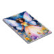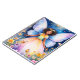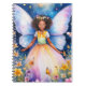 Ordenador portátil de 6,5 x 8,75 pulgadas con un joven chica con alas de mariposa situado en un animado jardín, rodeado de flores coloridas y estrellas brillantes. Su vestido es multicolor y lleva una corona de flores en su pelo rizado.