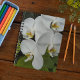 Portátil de tamaño estándar, enlazado en espiral para el hogar, la escuela o la oficina que incluye carátulas delanteras y traseras con una imagen fotográfica de flores Orquídeas de falaenopsis blancas, comúnmente conocidas como Moth Orchids. ¡Un bonito diseño floral! Seleccione las opciones de estilo del bloc de notas.