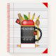 Apple del profesor y un Mug en un cuaderno. La portada tiene una imagen de una manzana en una taza, clásicos lápices amarillos, reglas y una taza de tiza negra en páginas gobernadas por la vieja escuela. Elija su propio título de personalizado o agregue un nombre como opción opcional. Y decide el aspecto de las páginas interiores, y el color de la espiral.