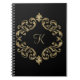Monograma este precioso patrón de damasco negro y purpurina dorado (no purpurina real) portátil o diario. Añade tu inicial.