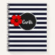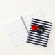 Portátil de espiral rayado en blanco y negro con diseño monográfico rosa en el centro. Puede personalizar este bloc de notas agregando su nombre o inicial utilizando la plantilla personalizada.