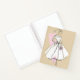 Un diseño de estilo de mediados de siglo con un toque retro con un dibujo de una novia en rosa y blanco sobre un fondo de cambio de color neutro. Inspirado por los patrones de vestimenta y los ilustraciones de moda de los años 50 y 60. Un diseño de personalizable para que puedas personalizar con tu propio texto, imágenes e ideas. Imagen original de arte digital creada por Jess Perry en QuirkyChic Retro.