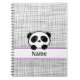 Este lindo cuaderno tiene un diseño de oso panda negro, blanco y morado y el nombre o texto de su elección.