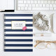 Este magnífico cuaderno cuenta con un fondo de rayas azul marino y blanco, un borde dorado falso y un peón rosa bonito con acuarelas suaves. Coordina con nuestros accesorios de oficina, productos de papel y accesorios de la Marina Stripe & Pink Peony.