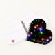 Este lindo cuaderno tiene forma de corazón y cuenta con una cubierta con un patrón de estrellas coloridas sobre un fondo negro. El diseño se personaliza con un espacio para introducir un nombre. ¡Buen regalo!