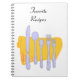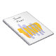 Un cuaderno personalizado con letras de guión y un juego de platería simple sobre una servilleta amarilla de bonito adornada con dorados. Personalizar para cambiar fuentes, colores de fondo y más y guardar el diseño para más adelante.