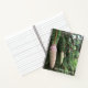 Un cuaderno con temática natural y un árbol de pino con pinos frescos.