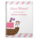 ¡Este cuaderno de chicas tiene un tema pirata rosa y morado! Hay un pirata de pelo negro sosteniendo una espada navegando en su barco pirata parado al lado de un loro en el lado izquierdo. En la parte superior e inferior del hotel, encontrarás rayas rosas, blancas, taupanas y acuáticas de moda. En la parte superior está escrito Ahoy Matey!. Debajo de eso, puede personalizarlo fácilmente con su nombre. Algunos elementos de diseño de STOCKBERRY STUDIO