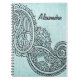 Jot down anota con este Mehndi Motif Notebook con un intrincado diseño de henna india en un contexto turquesa angustiado. Añade tu nombre u otro texto a este diseño étnico para darle un toque personal.
