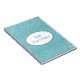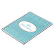 Portátil mostrado con un gráfico de estrellas pequeñas en dorado sobre un fondo azul cielo con la frase "Cuaderno de la novia" dentro de una forma ovalada con bordes coordinados. Personalizar este elemento y cambia el nombre al tuyo o quita el nombre, cambia los colores de la estrella en el filtro, el color de fondo o compra tal como está. Colores dorados, blancos y azul cielo.