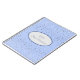 Portátil mostrado con un gráfico de estrellas pequeñas en gris plateado sobre un fondo azul suave con la frase "Cuaderno de la novia" dentro de una forma ovalada con bordes coordinados. Personalizar este elemento y cambia el nombre al tuyo o quita el nombre, cambia los colores de la estrella en el filtro, el color de fondo o compra tal como está. Colores dorados, blancos y azules.