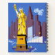 Poster de viajes vintage de Allegheny Airlines, que muestra la estatua de la libertad y el horizonte de la ciudad de Nueva York, con el edificio Empire State y el edificio Chrysler, entre otros. hacia 1950
