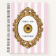 Este adorable cuaderno es perfecto para su próximo brunch, fiesta de cumpleaños o fiesta de soltero. El diseño presenta un fondo de rayas rosas y blancas con un marco ornamentado alrededor de un timbre con un texto que dice "presione para tomar champán". Puedes cambiar la palabra champagne a cualquier cosa que tu corazón desee haciendo clic en "personalizar esta plantilla".