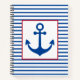 This preppy notebook features classic blue and white stripes with an accent of red and a nautical anchor. Personalize with your choice of name or special text on the back. Great for personalized gift bags and party favors.