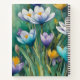 Crocus azules y violetas delicados se destacan sobre un fondo de acuarela verde, creando un efecto fresco y natural.