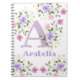 El diseño presenta Monograma y Nombre con Flores a cada lado en un color pastel de agua. Inicial es la carta A. Gift para Arabella en forma de cuaderno personal.