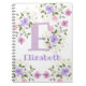 El diseño presenta el Monograma y Nombre Cristiano con Flores a cada lado en un color pastel de agua. Inicial es la letra E. Ejemplo Cuaderno es para Elizabeth.