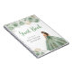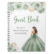 Este dulce libro de 16 personas cuenta con una hermosa princesa en un vestido de bolas verde sabio con arreglos florales. Es perfecto para una dulce fiesta de 16 años.
