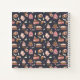 On a background of dark blue, this seamless pattern is loaded with various pastries in shades of pink, brown and cream colors. Some of the pastries and icons include: donuts, slice of cake as well as whole cakes, pies, cupcakes, cookies in a pink jar, croissants, flat pastries, glasses of milk, rolling pins, hearts, pink cherries, and a hot beverage in a teacup.