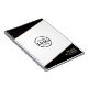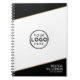 Este elegante cuaderno presenta llamativos acentos en ángulo negro en la parte superior e inferior, separados del fondo blanco por una línea dorada limpia para un toque moderno y elegante. El logotipo de su empresa se muestra de manera prominente en el centro de la portada, mientras que las líneas de texto personalizables a lo largo de la parte inferior pueden incluir su nombre y título, nombre comercial y eslogan, o cualquier detalle que elija. Perfecto para reuniones, toma de notas o uso corporativo, este cuaderno mantiene las cosas pulidas y profesionales con texto y diseño totalmente editables.