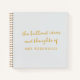 Un cuaderno minimalista para profesores con una tipografía informal de escritura manuscrita "las ideas y pensamientos brillantes" en oro, emparejado con el nombre personalizado de sus profesores en tipografía moderna en un fondo gris azul. ¡El regalo perfecto para cualquier profesor!