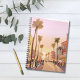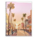 Pueblo costero al atardecer en California | Acuarela costera de palmeras