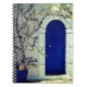 Este cuaderno tiene una foto de una puerta azul fresca sobre él.