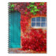 Cuaderno Puerta turquesa panorámica con hojas de otoño vívi