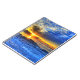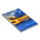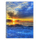 Una fotografía asombrosa con el ajuste del sol en la distancia con una playa nevada en el primero plano.