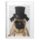 Pug, Hound formal y Gorra de FabFunky. Cuenta con un pug de dapper con un sombrero de tope divertido y un monóculo. | 191403D
